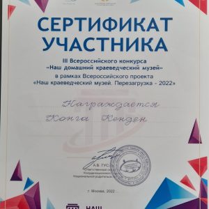 Сертификаты об участии обучающихся ЦДО в конкурсах Всероссийского проекта «Наш краеведческий музей.Перезагрузка-2022»