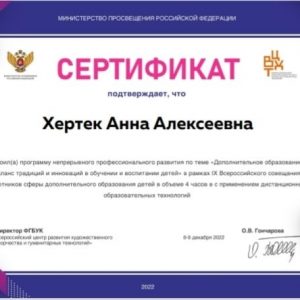 Сертификаты об участии обучающихся ЦДО в конкурсах Всероссийского проекта «Наш краеведческий музей.Перезагрузка-2022» ,организатором которого является Общероссийская общественная организация «Национальная родительская ассоциация социальной поддержки семьи и защиты семейных ценностей» при поддержке Министерства Просвещения Российской…