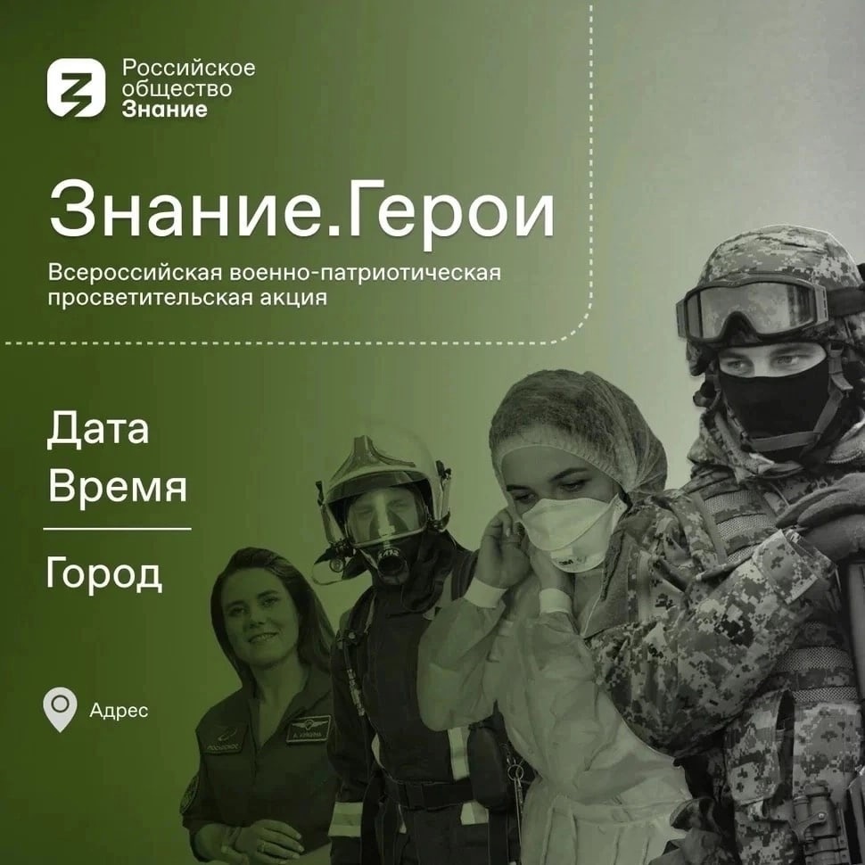 Российское общество «Знание» запускает Всероссийскую военно-патриотическую акцию «Знание.Герои», которая пройдет с 18 апреля по 31 мая 2023 года.