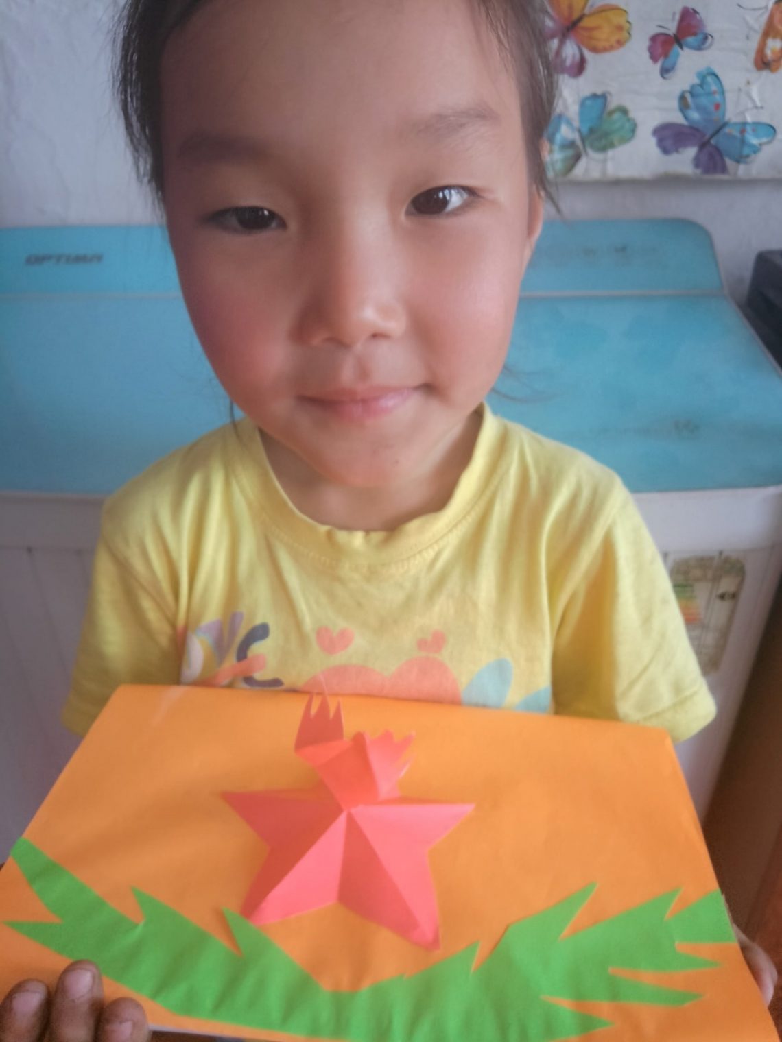 Конкурс семейного творчества «Рисуем с детьми Вечный огонь». Дагба Долума, 6 лет, обучающаяся объединения «Мир детства» ЦДО «Авырал» им. В.Д.Иргита». Руководитель Хертек Сайлыкмаа Алдын-ооловна.