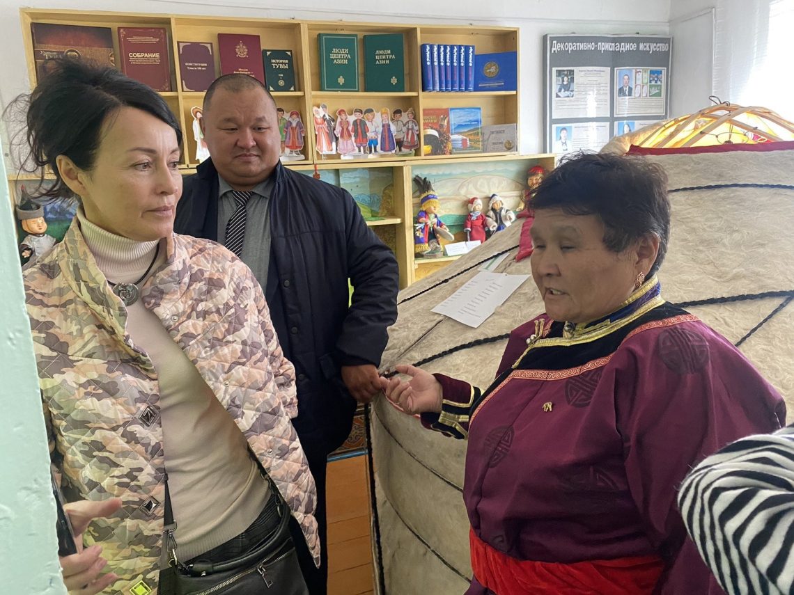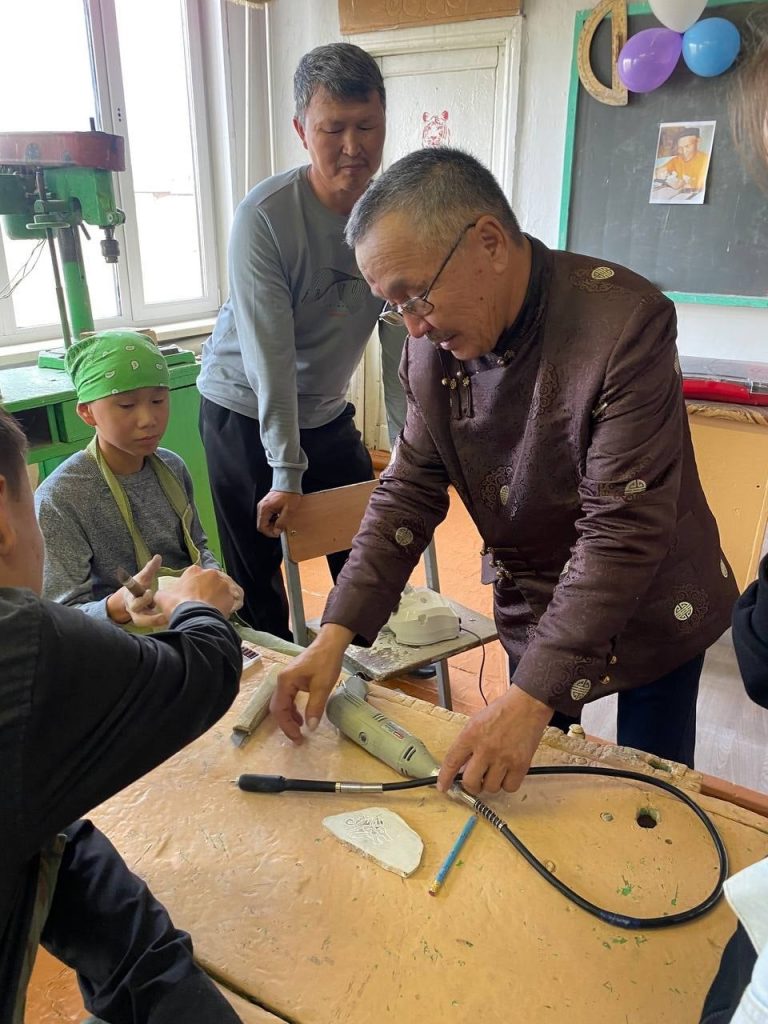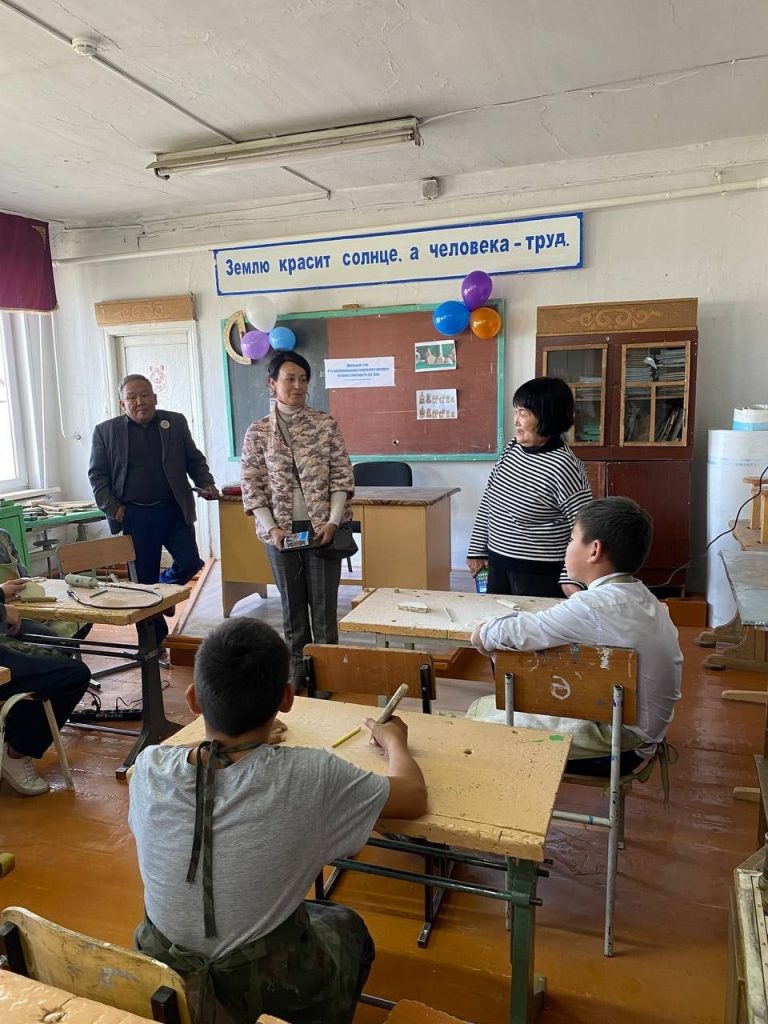 По ходу проведения школьных этапов конкурса на призы сенатора Дины Ивановны Оюн по обработке шерсти и резьбе по камню среди школьников, организаторами которого являются педагоги дополнительного образования ЦДО «Авырал»,сегодня, 22 сентября, приехали гости из Кызыла-представитель сенатора Россова Ольга Валерьевна и известные камнерезы республики. Гости вместе с директором ЦДО «Авырал» Тойбу-Хаа Долааной Болат-ооловной сегодня поинтересовались работами учащихся Тээлинской СОШ и дали им высокую оценку. После посещения конкурса гости пожелали успехов всем участникам конкурса.