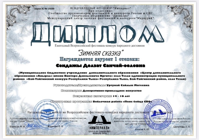 Сендажы Долзат Санчай-ооловна — лауреат 1 степени