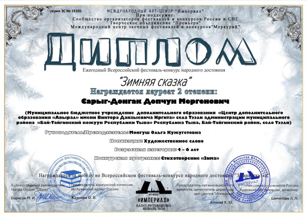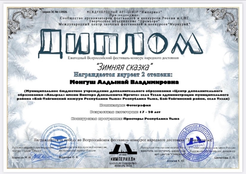 Монгуш Алдынай Владимировна — лауреат 2 степени