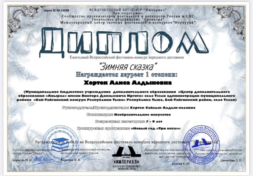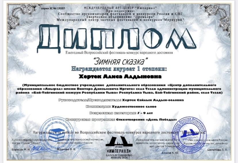 Хертек Алиса Алдыновна — лауреат 1 степени