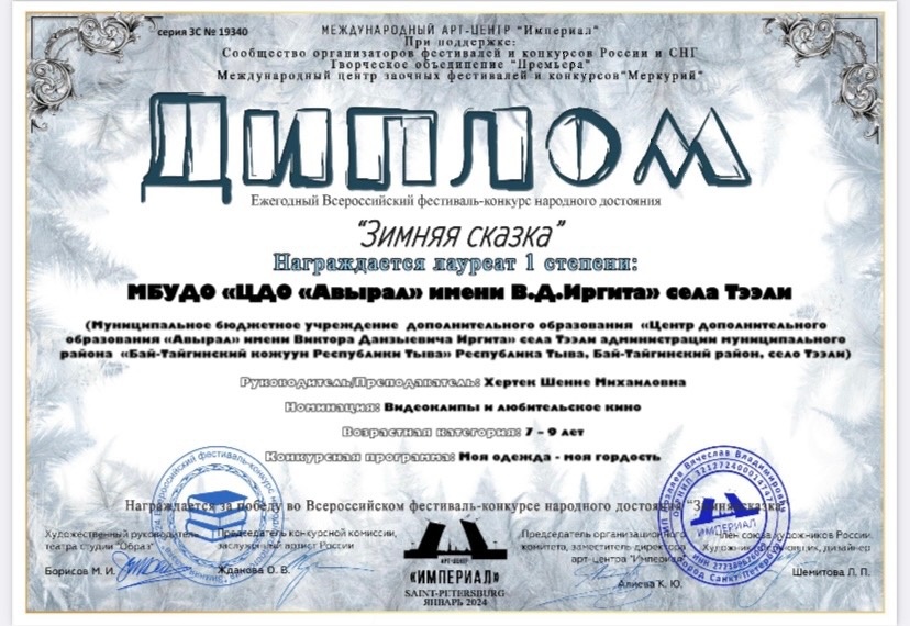 Обучающиеся МБУДО ЦДО «Авырал» имени В.Д. Иргита — лауреат 1 степени