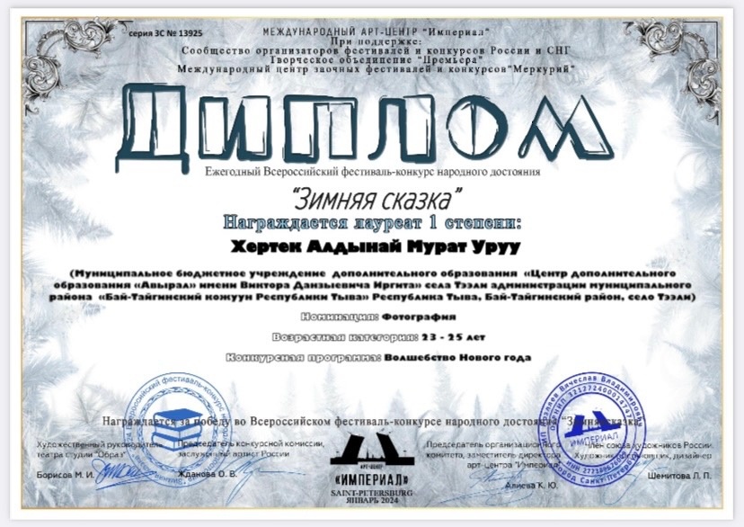 Хертек Алдынай Мурат уруу — лауреат 1 степени