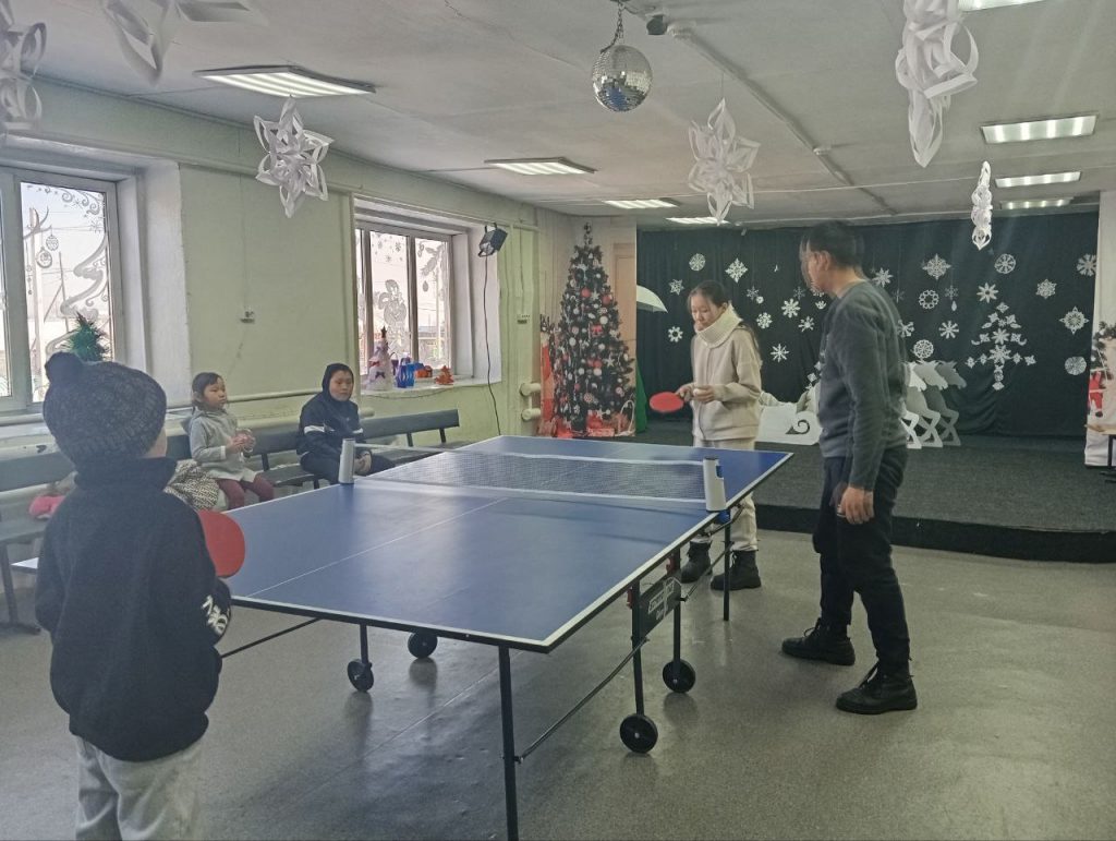Согласно по плану ВДЦ 03.01.2025.г педагоги ЦДО «Авырал» им В. Д. Иргита Сенги-Доржу К. И, Бегзи Ш.Х. провели спортивную игру по настольному теннису. Обучающиеся с интересом учились играть. Педагоги объяснили как играть в теннис, показали и сыграли с мальчиками, потом они по парам самостоятельно стали играть в теннис.Охват обучающихся — 5