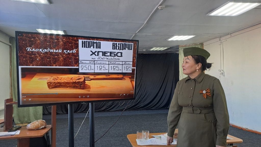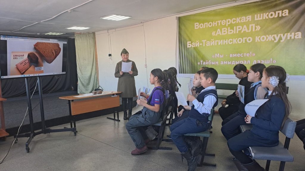 Педагоги Куулар А.М, Кужугет А.А, Хомушку А.Г, Бегзи Ш.Х. «Центра дополнительного образования «Авырал» имени В.Д Иргита» присоединяются к Всероссийской акции «Блокадной вечности страницы»27 января 2025 года исполняется 81 год со дня полного снятия блокады Ленинграда. .Блокада Ленинграда длилась 872 дня, и, по разным данным, погибло от 800 тысяч до полутора миллионов человек, большинство из которых умерли от голода.Цель акции — напомнить о самых героических и трагических моментах Великой Отечественной войны, а также о мужестве и стойкости жителей города, переживших одну из самых жестких блокад в истории.Педагог дополнительного образования объединения «Домисолька»Куулар А.М рассказала обучающимся о блокадном хлебе, его составе и карточках, по которым его выдавали. Обучающиеся узнали о судьбе блокадницы Тани Савичевой. , а так же показала обучающимся видео презентацию «Детям о блокаде Ленинграда» .Обучающиеся узнали о тяжелых испытаниях, выпавших на долю жителей осажденного закрытого города Ленинграда: о голоде и холоде, о детях и женщинах, работавших наравне с мужчинами на заводах, о защите и обороне Ленинграда советскими солдатами, и увидели фотографии детей, вывезенных по Дороге жизни, а также потрогали хлебные карточки.. Символом Всероссийской акции «Блокадный хлеб» стал небольшой кусочек хлеба весом 125 граммов — именно такая минимальная порция была установлена для жителей города в самый суровый период блокады зимой 1941–1942 годов.Обучающиеся узнали о норме хлеба блокадников..В завершение мероприятия детям был показан видеоролик «Блокадный хлеб».