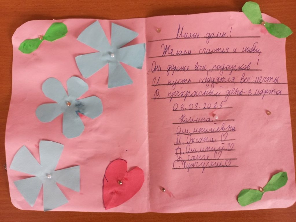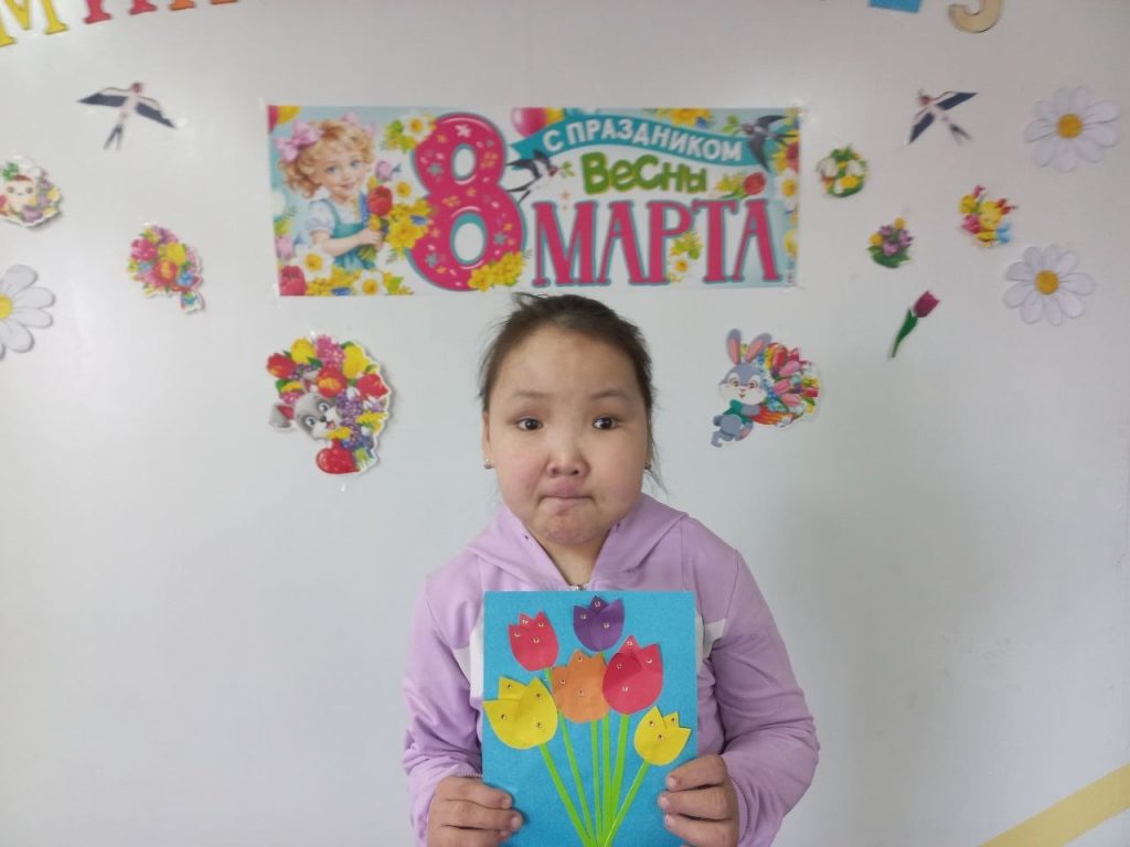 Обучающиеся объединения «Домисолька» ЦДО «Авырал» имени В.Д.Иргита участвуют в акции «Открытка для любимых мам», посвящённой ко дню 8 марта. Самые активные Дуганчы Алтея, Очур Севильяна, Хертек Номина, Шыырап Олча. Руководитель объединения: Куулар А.М.