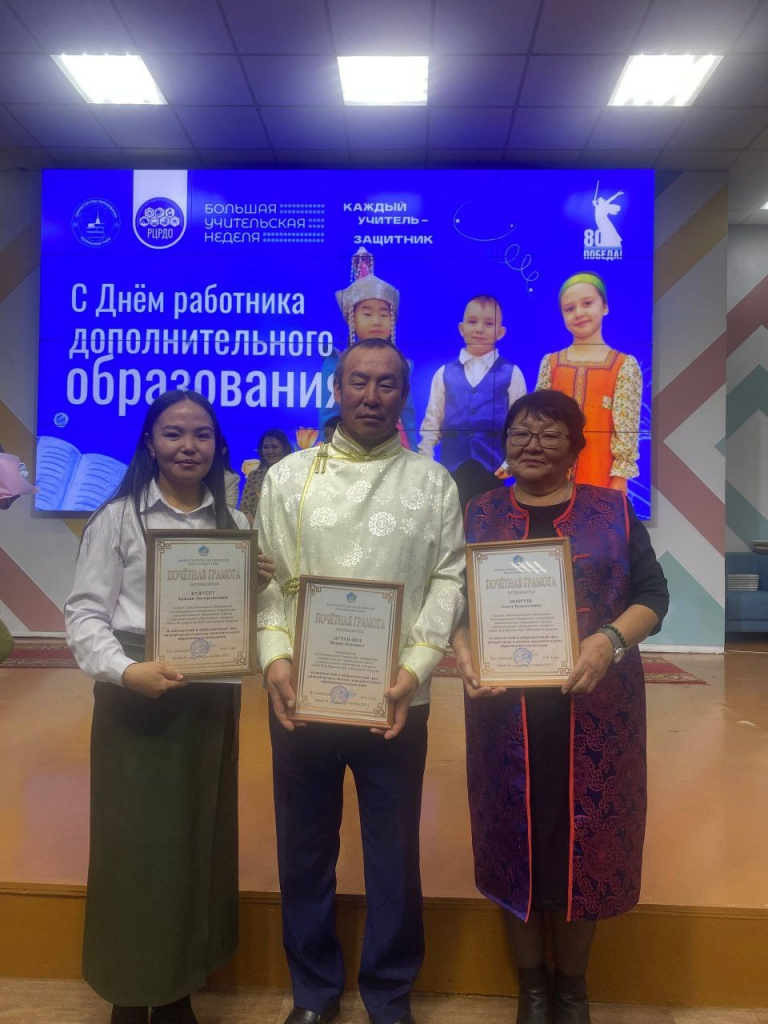 В центре «Сылдысчыгаш» прошло торжественное мероприятие, посвященное Дню работника дополнительного образования. Мы рады сообщить, что наши педагоги Монгуш Ольга Кужугетовна, Дучун-оол Кежик Олегович и Кужугет Аржаан Ангыр-ооловна были награждены Почетными грамотами Министерства образования Республики Тыва. Поздравляем с заслуженными наградами!