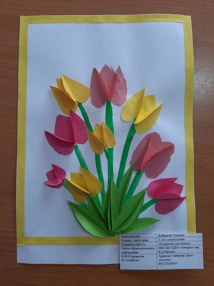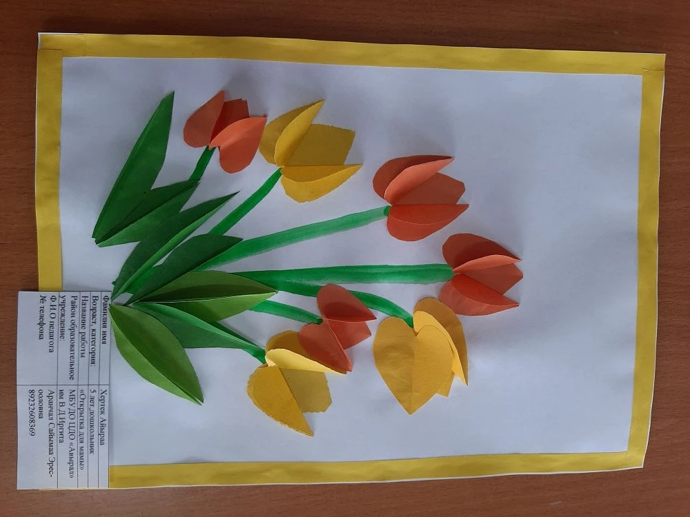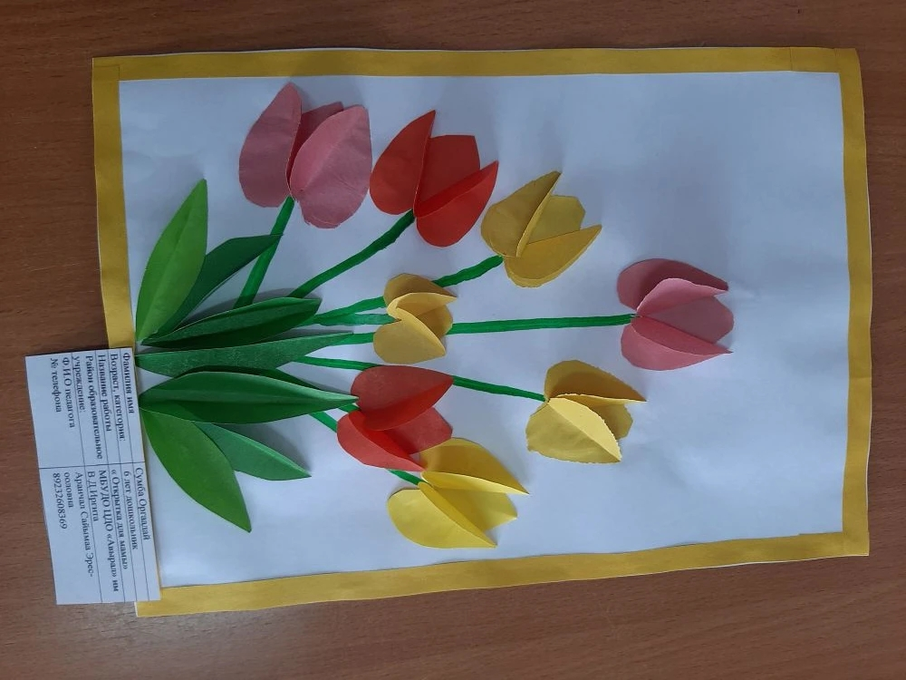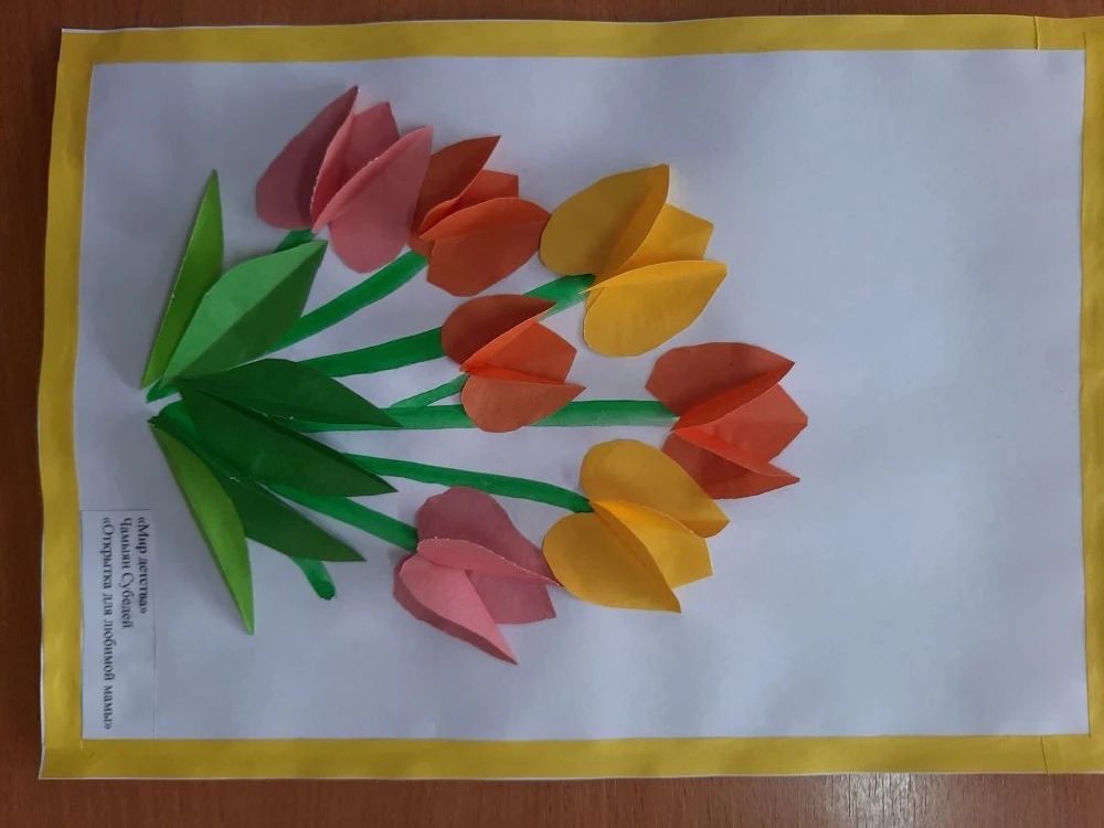 Наступила весна, а вместе с ней и чудесный праздник мам — 8 Марта. В преддверии этого праздника в объединении «Мир детства» провели творческое занятие по созданию поздравительной открытки. В начале занятия поговорили о празднике, о своих мамах. Дети с интересом и с старанием делали поделку. Они вырезывали формы цветков, лепестки и приклеивали их на стебли. Все дети справились с заданием. У каждого получилась красивая открытка, которую они подарят мамам.