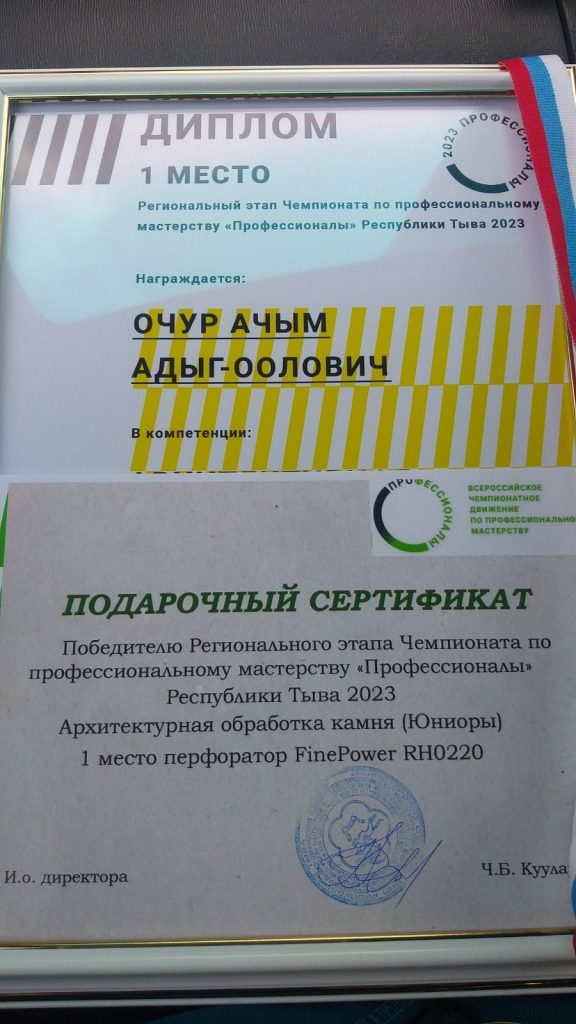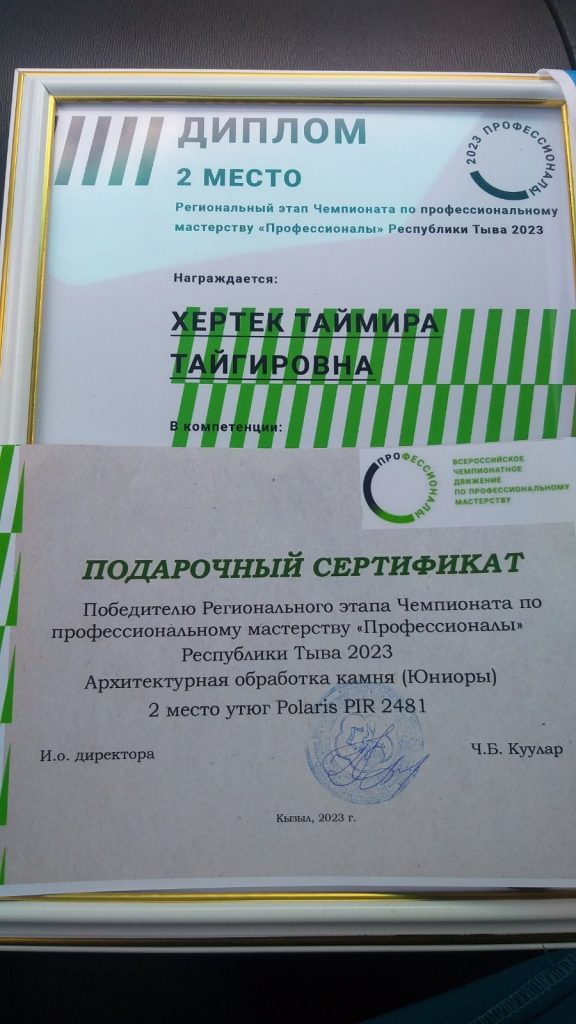 Сегодня определили победителей Регионального чемпионата по профессиональному мастерству «Профессионалы» Республики Тыва по компетенции и площадки»Архитектурная обработка камня(Юниоры)».В течение трех дней участники из нашего кожууна демонстрировали свои знания, навыки и умения и показали готовность к открытой конкуренции,к дальнейшему личностному и профессиональному развитию,приобрели бесценный опыт,который им пригодятся в дальнейшем.